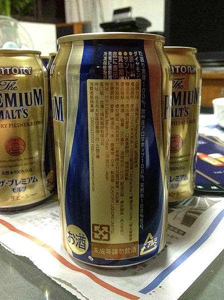 到現在喝過不少牌子的啤酒,比較之下,suntory這款The PREMIUM MALT‘S喝起來比較濃厚,入口帶點苦,但慢慢的甘甜味會上來,就算不了解成份中「Aroma Hop」啤酒花是什麼,100%二條大麥麥芽有什麼作用,一分錢一分貨的真理卻能得到驗證,絕對值回票價。