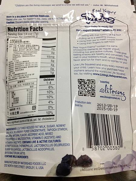 這個口味吃起來比櫻桃口味的更得我心,藍莓的味道很夠,像是固體的乳酸菌飲料,放入口中,不用10秒中就被口水融化了,很適合口水多的小朋友及嘴饞的大朋友。