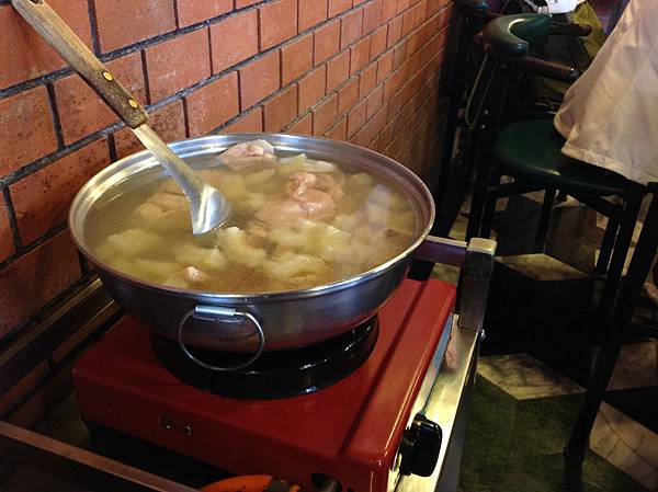 湯在桌旁的爐上加熱~