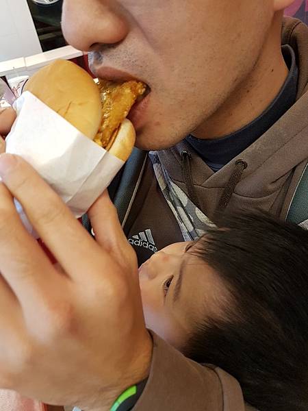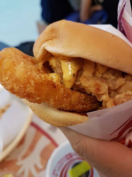 雖然雞腿肉及黃金薯餅都是油炸的,但在醬汁的中和下,可以不覺油膩的吃完一個堡,而且意猶末盡。