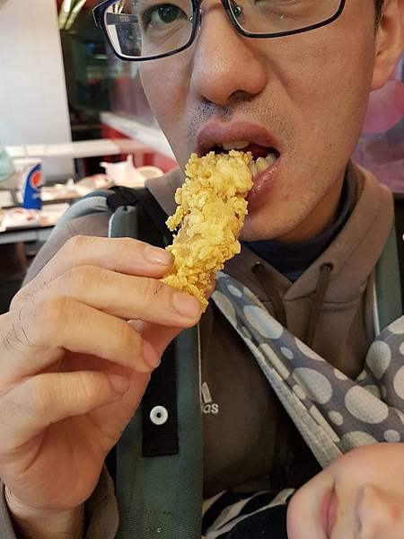 雖然我不是太愛厚皮的炸雞,但剛起鍋的炸雞就是好吃,肉汁豐富不柴,一樣是微微的辣度,不沾醬也好吃(好像也沒有提供沾醬),冬天超適合來這一盒99群星餐,體溫邊吃邊上升...