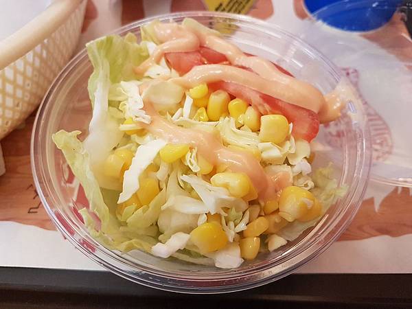 因為已經有薯條,所以我就把附餐中的香酥脆薯換成鮮蔬沙拉,多少增加一些蔬菜的攝取量,救救我日益坐大的小腹,雖然看起來不是太美觀(汗),吃起來還算新鮮,不會有放很久的怪味。