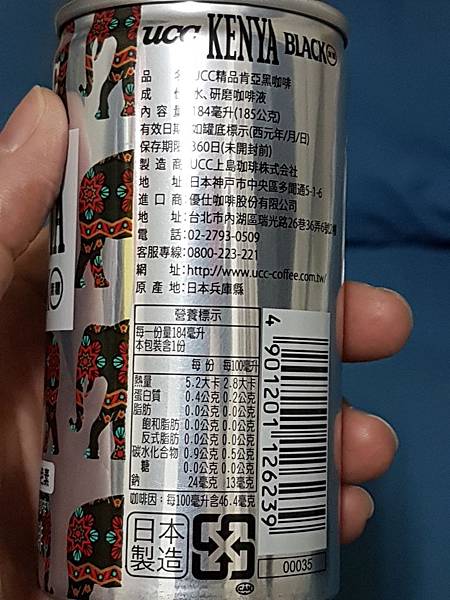而這支UCC KENYA BLACK無糖咖啡的包裝,恰好是用肯亞的象徵大象做為圖裝,莫非暗示有著和象一般的力量及個性(笑)。